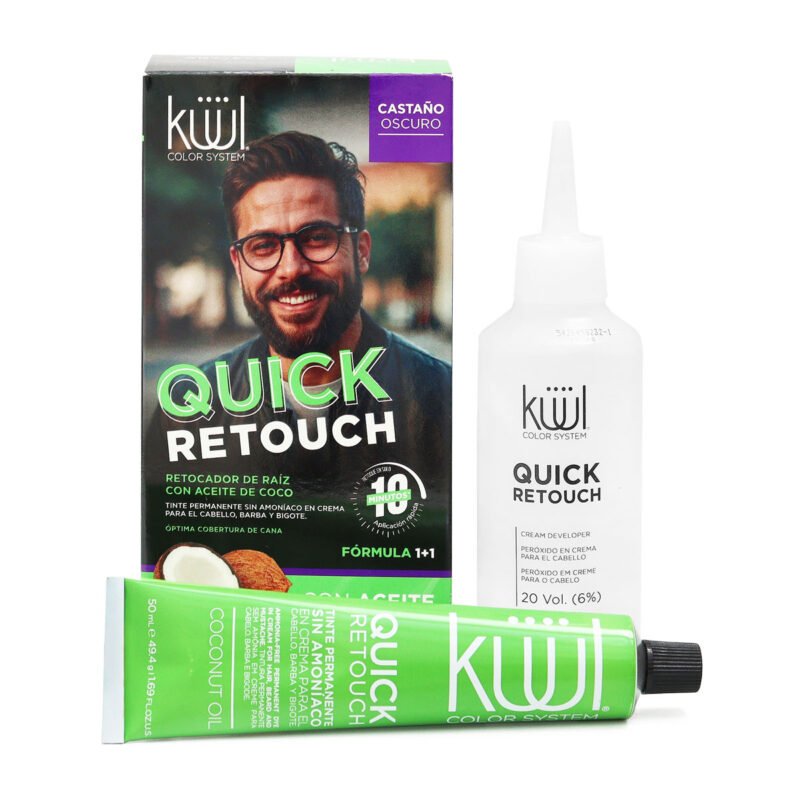 Retocador de raíz permanente de kuul cubre las canas de forma rápida en tan solo 10 minutos, sin amoníaco que ofrece cobertura óptima en cabello, barba y bigote ya que es ideal para retocar entre cada tinte.