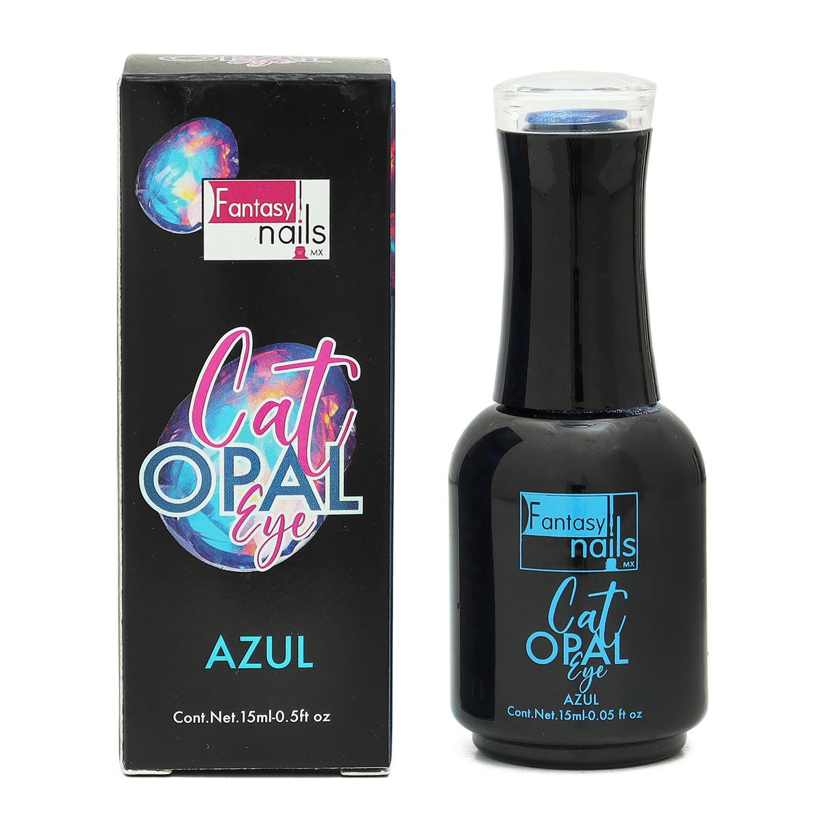 Gel de uñas Ojo de Gato Azul de Fantasy Nails es un esmalte semipermanente con partículas magnéticas que crea un efecto visual hipnótico en las uñas, simulando la pupila vertical de un gato, con destellos azules profundos y reflejos tornasolados que cambian con la luz. Se aplica sobre una base, se usa un imán para dirigir los pigmentos metálicos y luego se cura en lámpara UV/LED, ofreciendo un acabado profesional y un brillo multidimensional para diseños únicos.