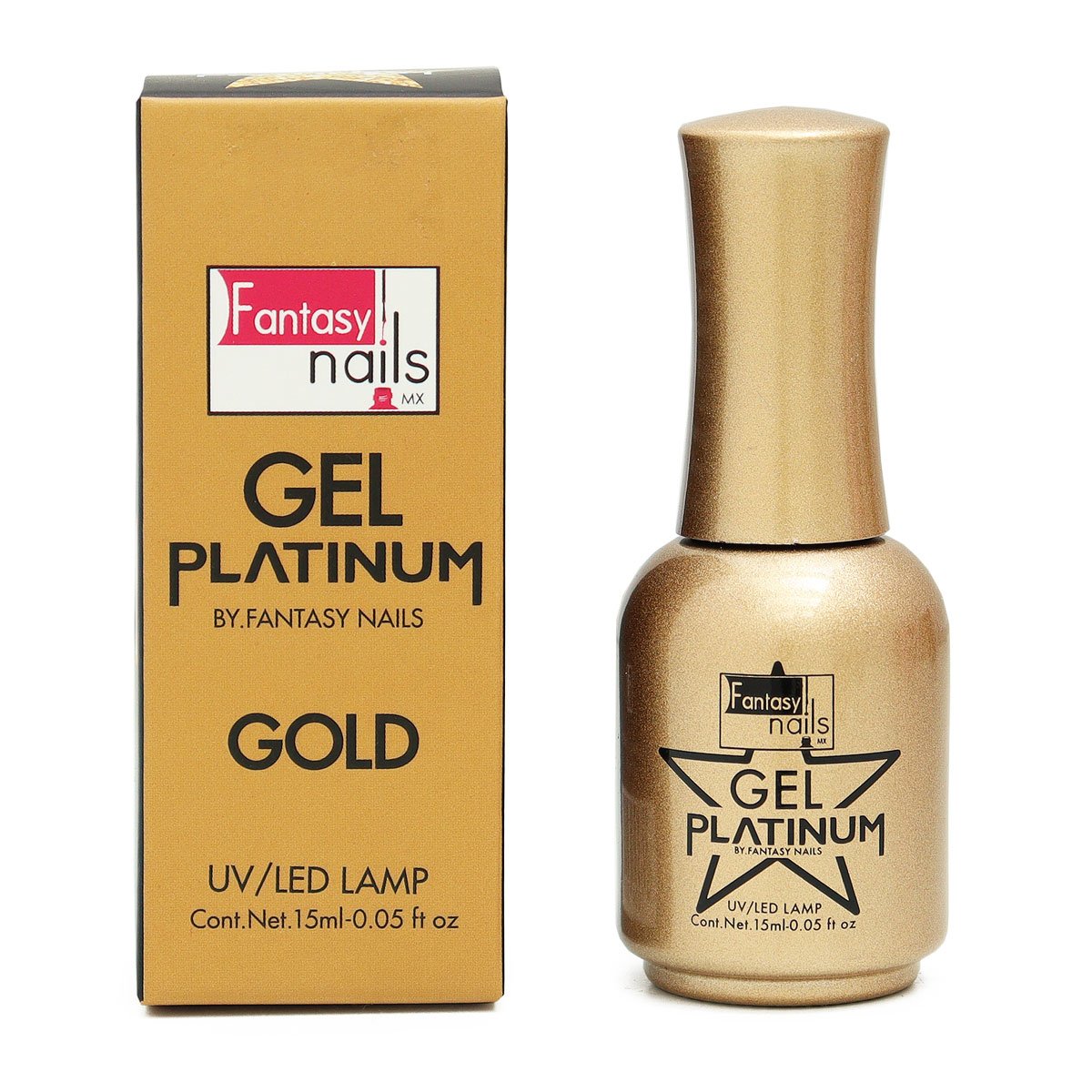 Gel para uñas Platinum Gold de Fantasy Nails es un gel de uñas altamente pigmentado, de consistencia fina y metálico dorado, usado para crear diseños de Nail Art intrincados como líneas, flores y efectos, que se seca en lámpara UV/LED para un acabado brillante y duradero, permitiendo libertad creativa con su espesor y color intenso.